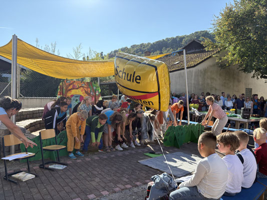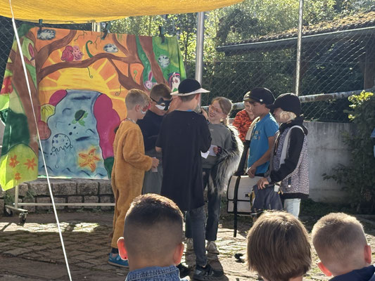 Freunde Eule, Fuchs und Dachs zur Seite stehen. Gebannt und begeistert folgten nicht nur die neuen Erstklässler diesem liebevoll inszenierten Stück bevor sie, begleitet von ihren Paten aus