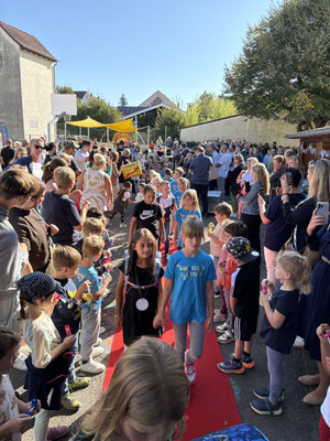 der 3.Klasse, zu ihrer ersten Unterrichtsstunde ins Schulhaus einzogen. Wir wünschen ihnen und ihren Lehrerinnen Edna Thietke und Hanna Menner einen